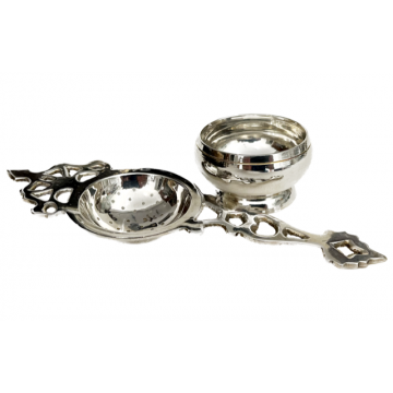 Επάργυρο αντίκα tea strainer, σουρωτήρι τσαγιού 2 τεμαχίων, Αγγλίας.