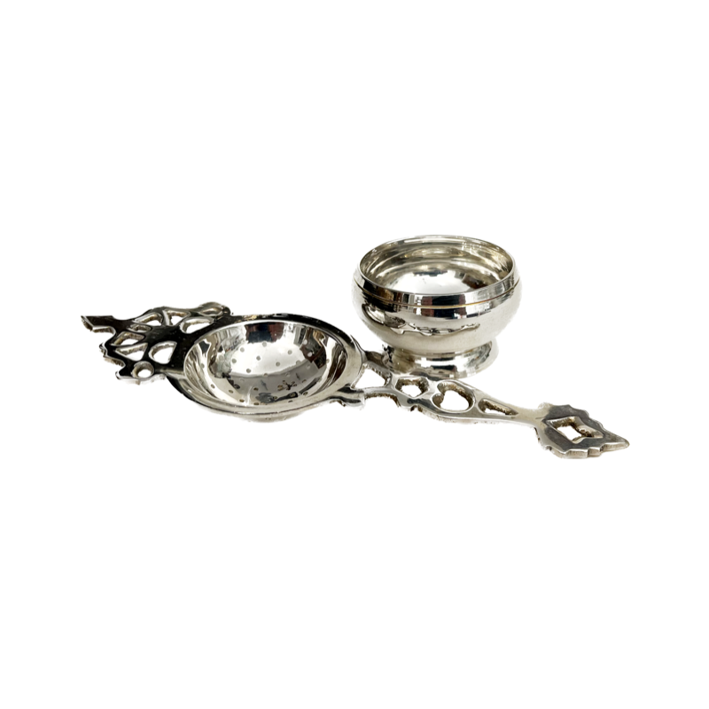 Επάργυρο EPNS αντίκα tea strainer με μπολ, σουρωτήρι τσαγιού 2 τεμαχίων, Αγγλίας.