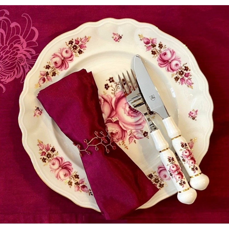 Μαχαιροπίρουνα, 24 τεμάχια, ανοξείδωτα με λαβή πορσελάνης, σχέδιο Rose von Weimar, του οίκου Weimar Porzellan.