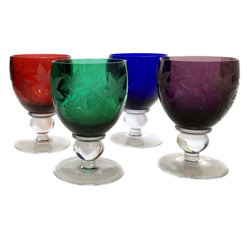 Ποτήρι, κρύσταλλο, χρωματιστό, σκαλιστό, σχέδιο Vine, του οίκου Royal Scot Crystal.