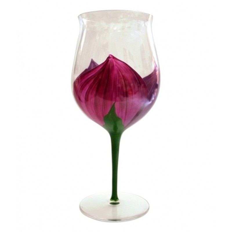 Ποτήρι για νερό ή cocktail, γυάλινο, σχέδιο Tulip, με τουλίπα ζωγραφισμένη στο χέρι, του οίκου Nagel.