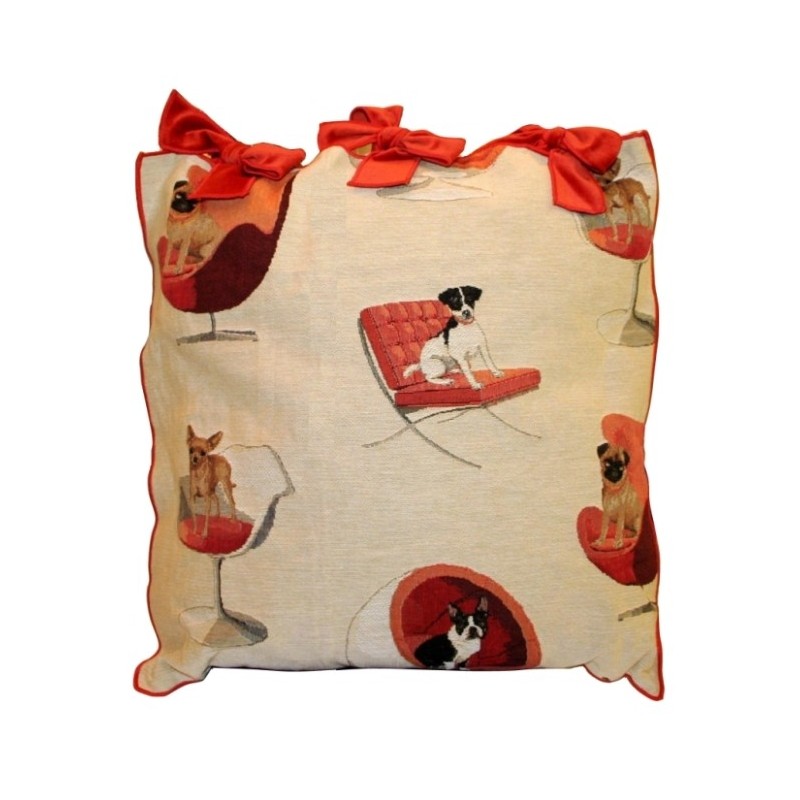 Μαξιλάρι τετράγωνο, σχέδιο Dogs, με 3 βελούδινους φιόγκους.