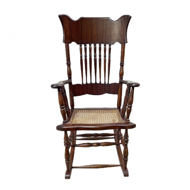 Πολυθρόνα κουνιστή με ψάθα στο κάθισμα.