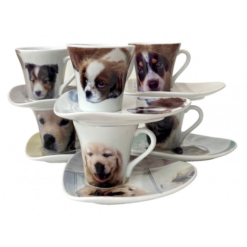 Σετ 6 φλιτζάνια με πιάτο, σχέδιο Dogs, με 6 διαφορετικά είδη σκύλων.