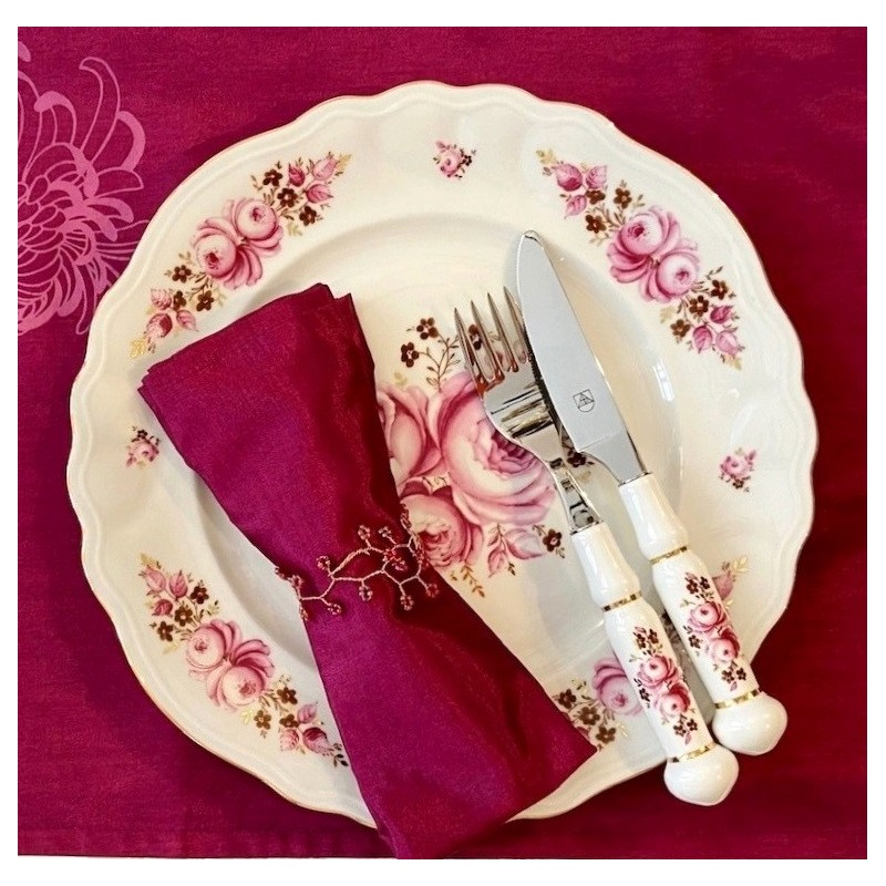 Μαχαιροπίρουνα, 24 τεμάχια, ανοξείδωτα με λαβή πορσελάνης, σχέδιο Rose von Weimar, του οίκου Weimar Porzellan.