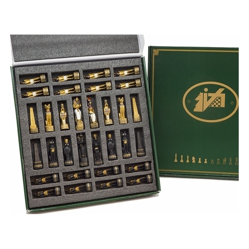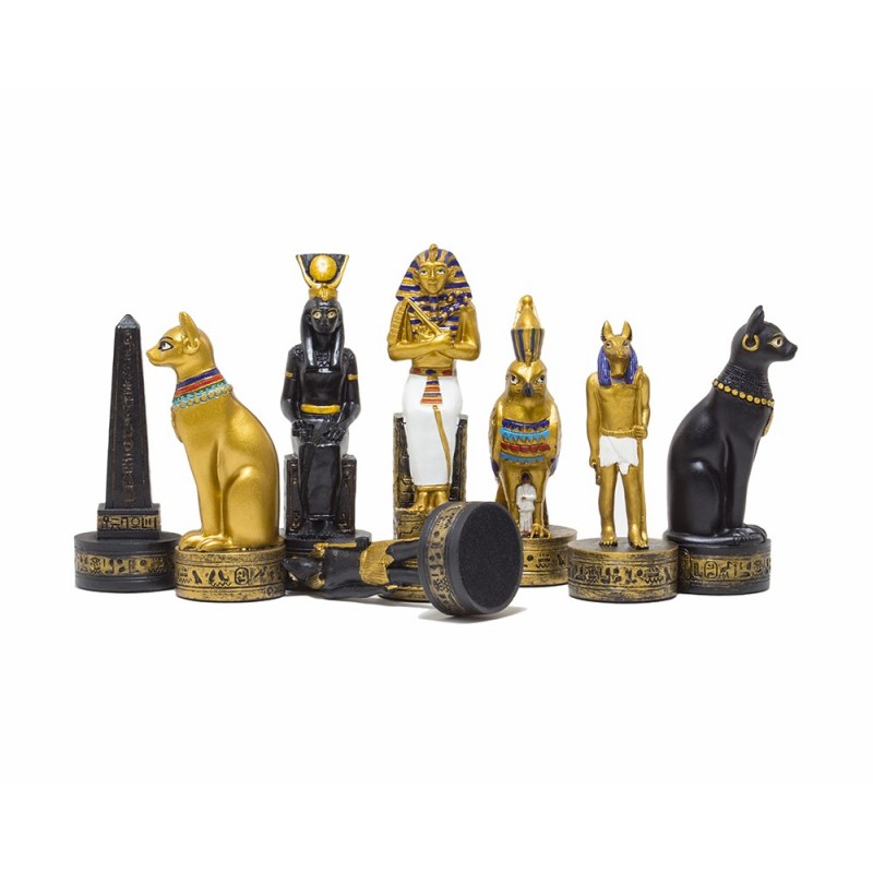 Πιόνια σκακιού, εμπνευσμένα από την Αρχαία Αίγυπτο, ζωγραφιστά στο χέρι, από συνθετικό κεραμικό (resin), της εταιρίας Italfama.