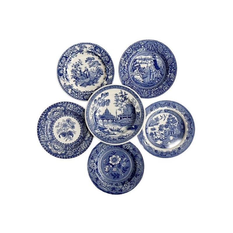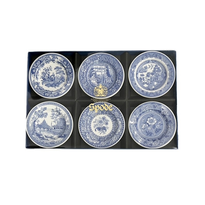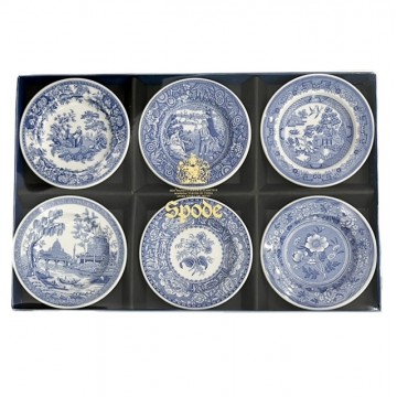 Σετ 6 τεμαχίων συλλεκτικά πιάτα μινιατούρες, σχέδιο Georgian Blue Room Collection, του οίκου Spode Αγγλίας.