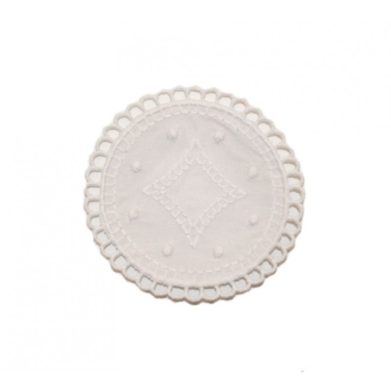Πετσετάκι κεντητό, λευκό, χειροποίητο, διαμέτρου 11cm, σε συσκευασία 8 τεμαχίων.