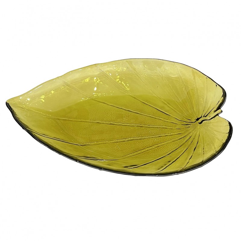 Πιατέλα σερβιρίσματος, γυάλινη, σχέδιο Green Leaf, σχήμα φύλλου, 38cm.