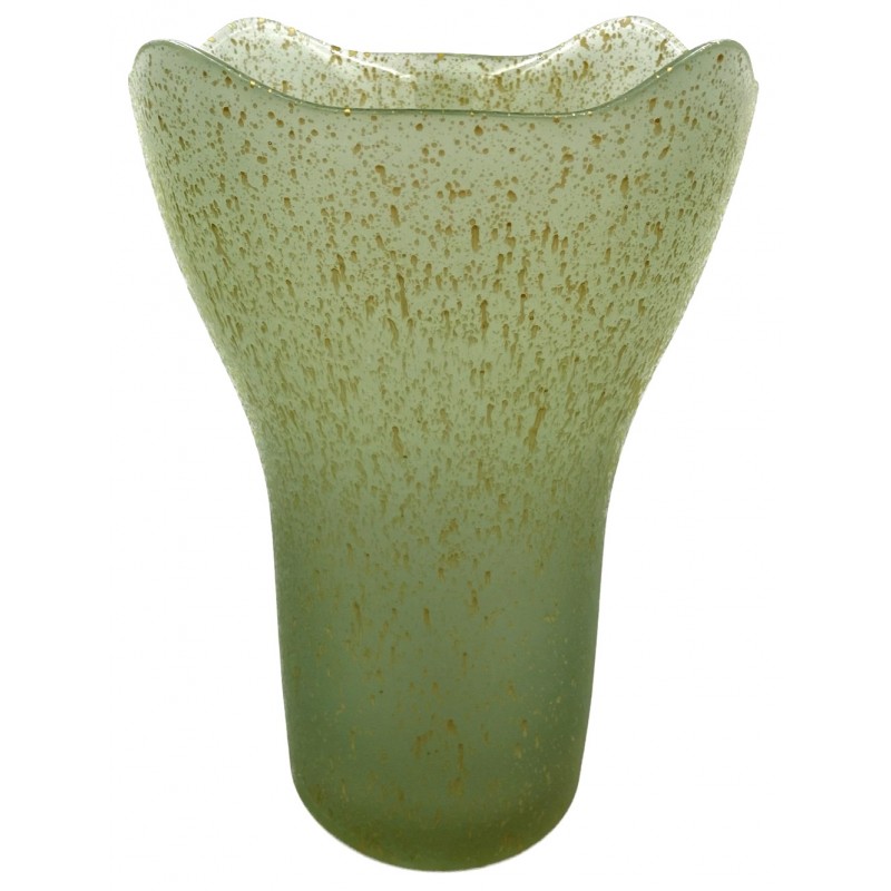 Βάζο γυάλινο, σε απαλή πράσινη απόχρωση, με χρυσές λεπτομέρειες.