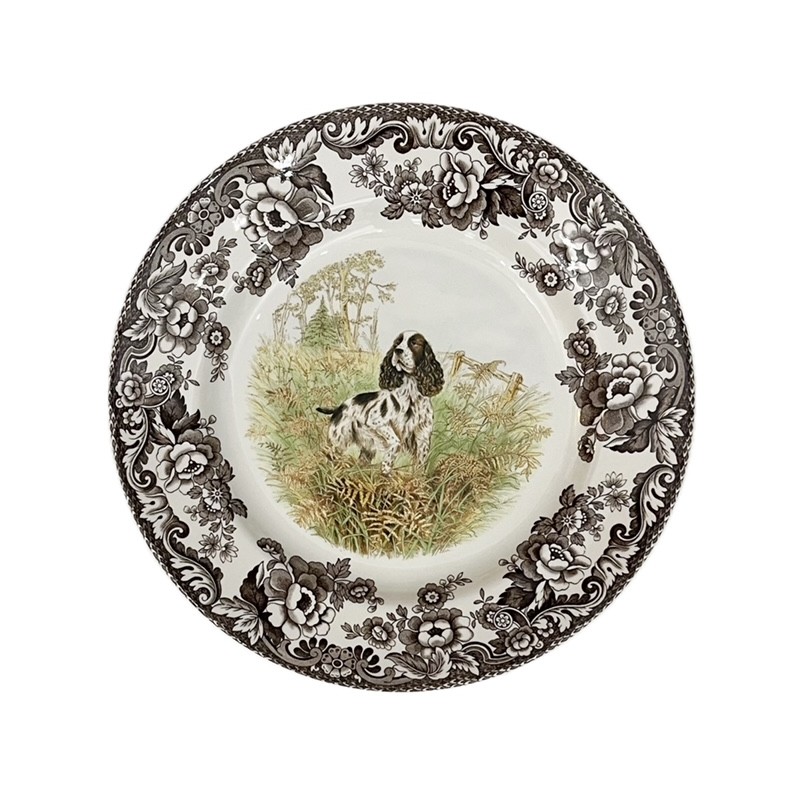 Πιάτο φαγητού, σχέδιο Woodland Hunting Dogs, English Springer Spaniel, του οίκου Spode Αγγλίας.