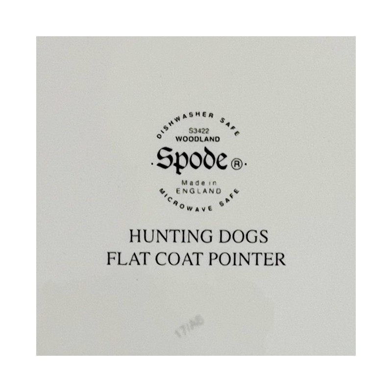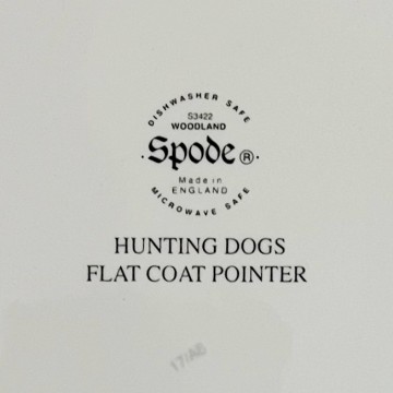 Συλλεκτικό πιάτο φαγητού, σχέδιο Woodland Hunting Dogs, Flat Coat Pointer, του οίκου Spode Αγγλίας.