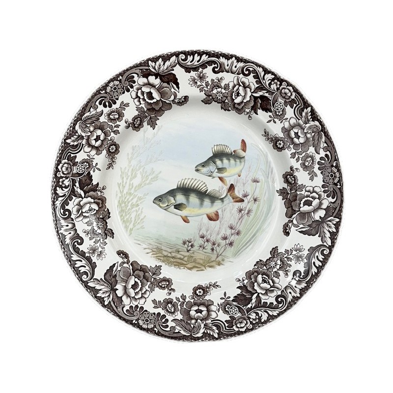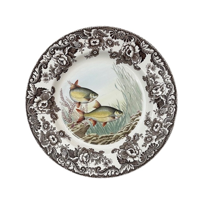 Πιάτο φαγητού, σχέδιο Woodland Stream "Perch", του οίκου Spode Αγγλίας.