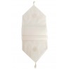 Τραβέρσα σε λευκή, με διαφάνεια, κέντημένες χάντρες και φούντα.