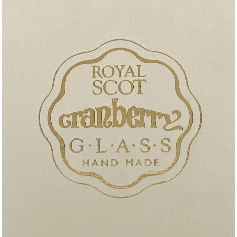 Trumpet vase, Cranberry design, mouth blown glass, by Royal Scot Crystal.