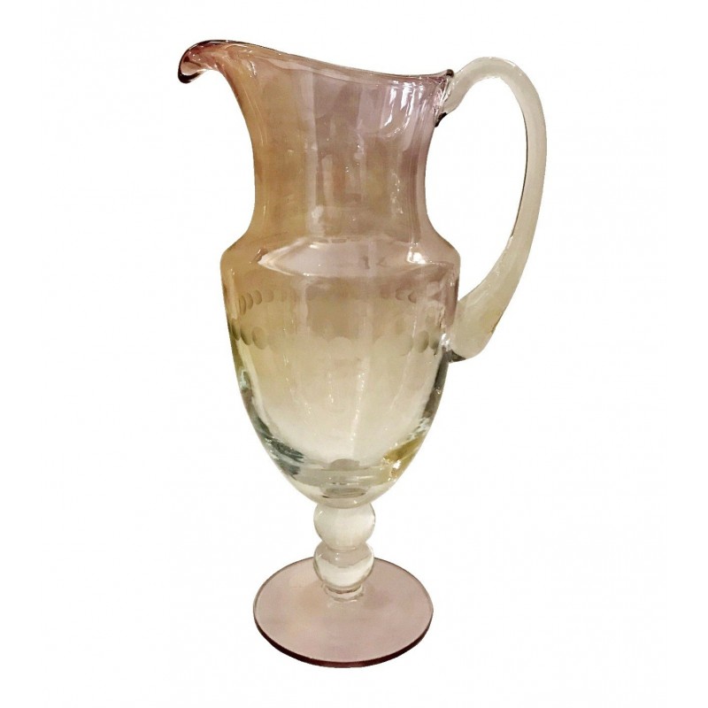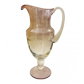 Transparent, stemmed glass, slightly tinted on the base and the upper part of the jug.