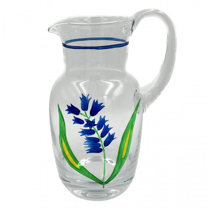 Beautiful decorative water jug, glass, Hyacinthus design.