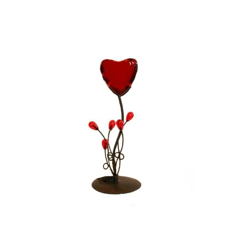 Tulip red, glass tealight, candle holder and metal base.