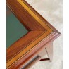 English table square with brown leather top and gold details.