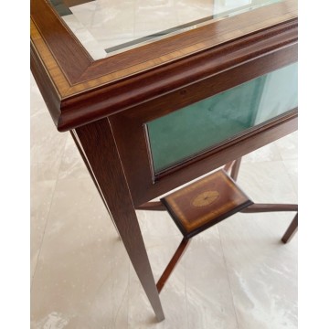 Vintage English display cabinet, Sheraton style, with inlay.
