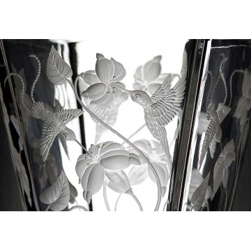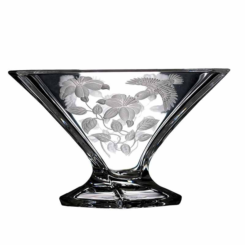 Crystal bowl, hand engraved, Hummingbird design.