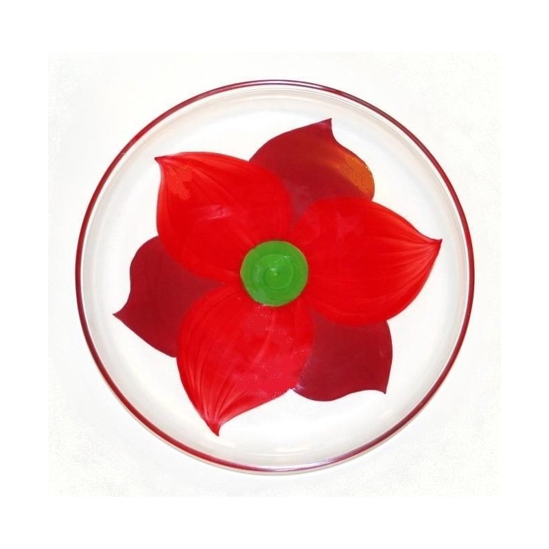 Glass platter, Tulip red design, round, with red tulip, hand painted.