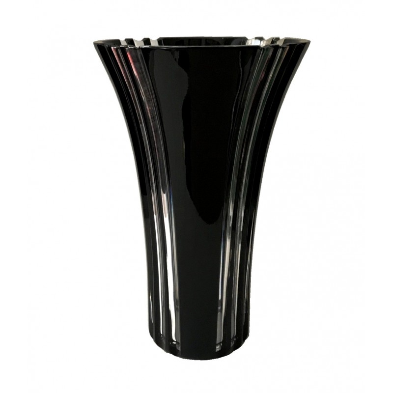 Modern crystal black vase, Black Transparency design. The vertical transparent stripes add to its originality.