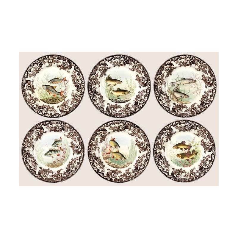 SET OF 6 WOODLAND STREAM PLATES 20cm