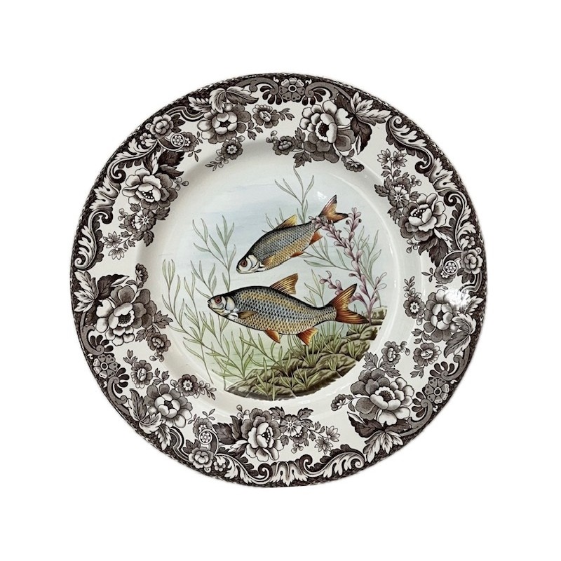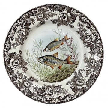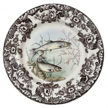 Plate, Woodland Stream, Salmon design, by Spode England.